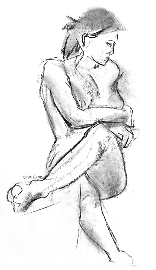 As I feel more and more comfortable drawing in graphite, I’m looking for new techniques and materials to use in these figure drawings. I couldn’t find any tips or suggestions online, so I brought a material I hadn’t used in a long time: oil pastels.